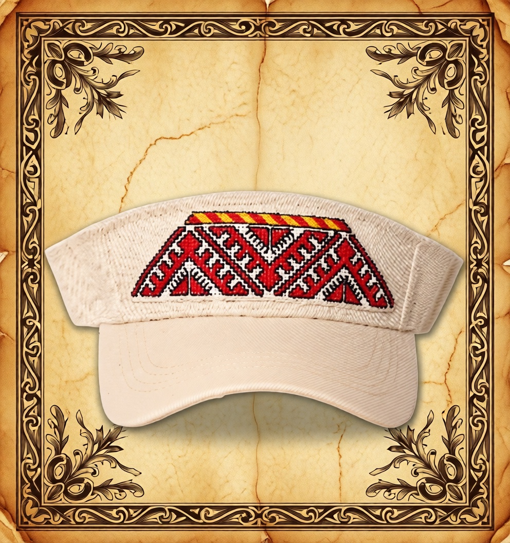 Кепка-козырек с нашивкой, выполненной в технике башкирской счетной вышивки.