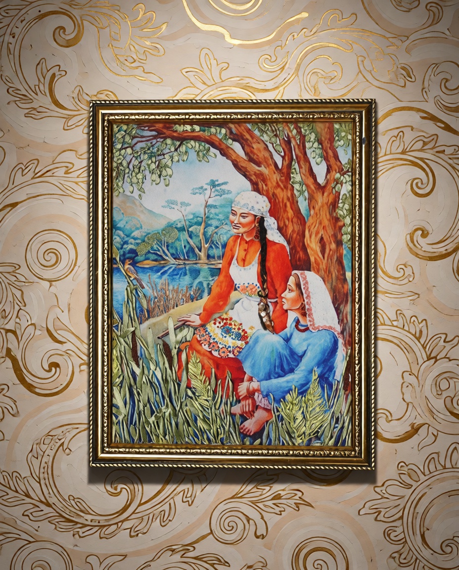 - Вышивка: цветные шёлковые нити — придают узору благородный блеск и глубину цвета
