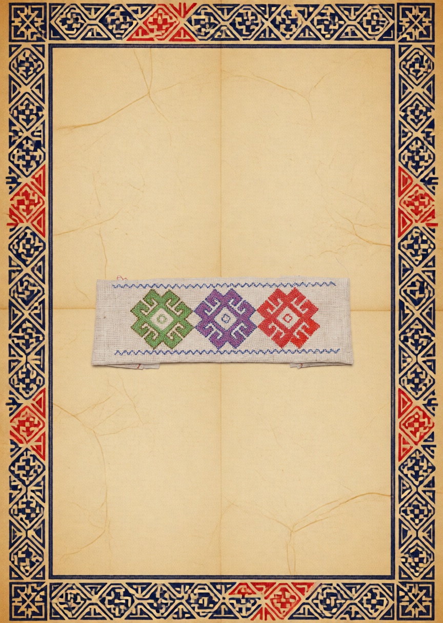 - Для одежды: вставка на воротник, манжеты или подол национальной рубахи (кулдэк)